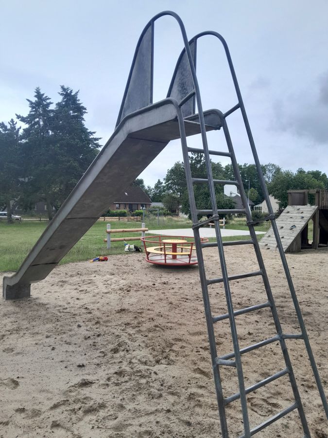 Auf dem Spielplatz in Jameln steht seit vielen Jahren eine Bockrutsche. Bei der letzten Jahresinspektion hat der Prüfer diese Rutsche dann bemängelt, da die Sprossen etwa 1,5cm zu wenig Platz zueinander haben. Er verlangte eine Entnahme der Rutsche.